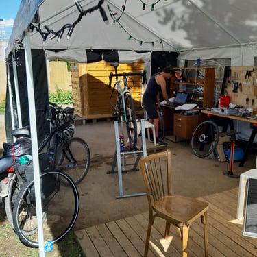 Schließlich tauchte am Wegesrand eine kleine mobile Fahrradreparaturwerkstatt auf, direkt am Fluss. Genau zur richtigen Zeit. Der Mechaniker schaute sich mein Vorderrad an, betrachtete Handschuh, Tape und Kabelbinder – und musste erst einmal lachen.