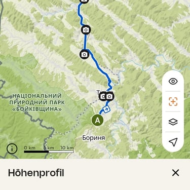 Die heutige Etappe meiner Karpatenreise führte mich von Mel'nychne nach Staryi Sambir – rund 55 Kilometer, die sich entspannt bewältigen ließen. Nach den vergangenen Tagen, insbesonders nach dem gestrigen Tag in den Bergen fühlte sich diese Strecke fast wie ein „Durchrollen“ an: wenige Höhenmeter, angenehmes Terrain und genug Zeit, die Umgebung bewusst wahrzunehmen.
